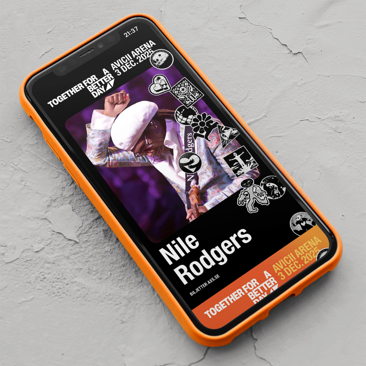 Design till TOGETHER FOR A BETTER DAY. Åter dags att fylla Avicii Arena med musik och kärlek. En konsert för ungas psykiska hälsa. Jag har satt formen och har fått gå sticker-bananas. Kund: Tim Bergling Foundation