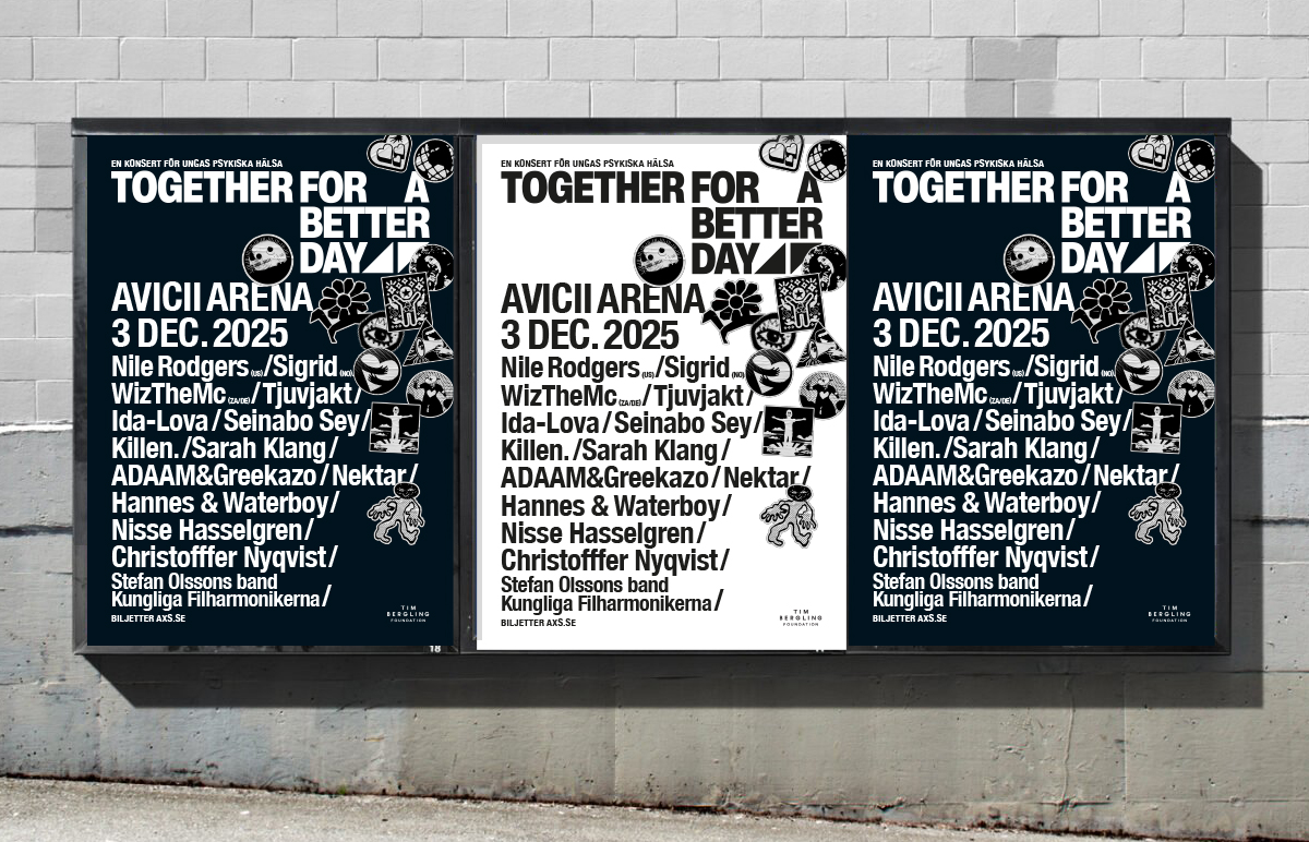 Visuell identitet till en musikalisk manifestation, Together For a Better Day, för ungas psykiska hälsa på Avicii Arena.